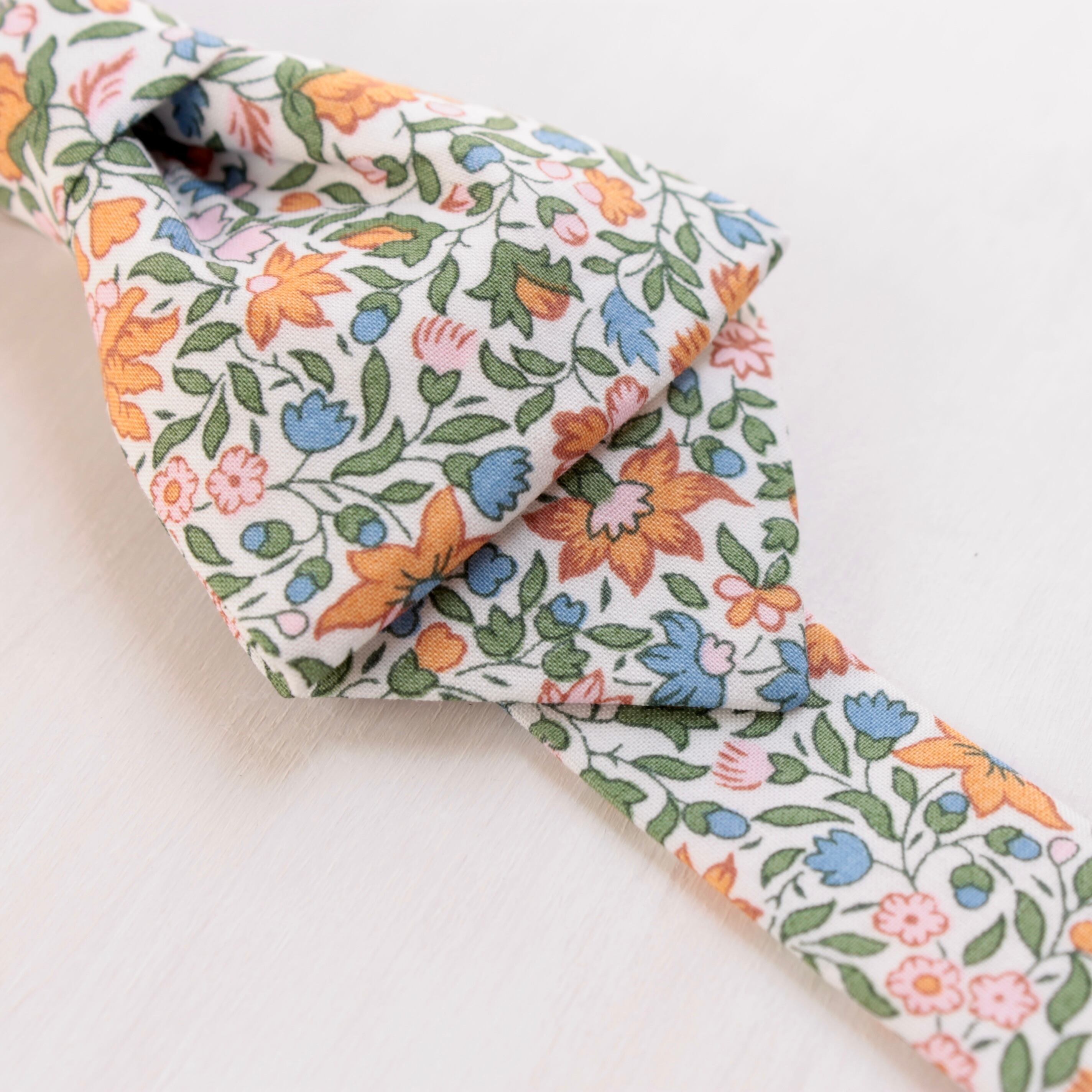 英国テキスタイルブランド、Liberty社の生地を使用しています。上質な光沢感と上品で華やかなデザインが特徴で、ハレの日はもちろん、カジュアルな装いへのワンポイントとしてもおすすめです。