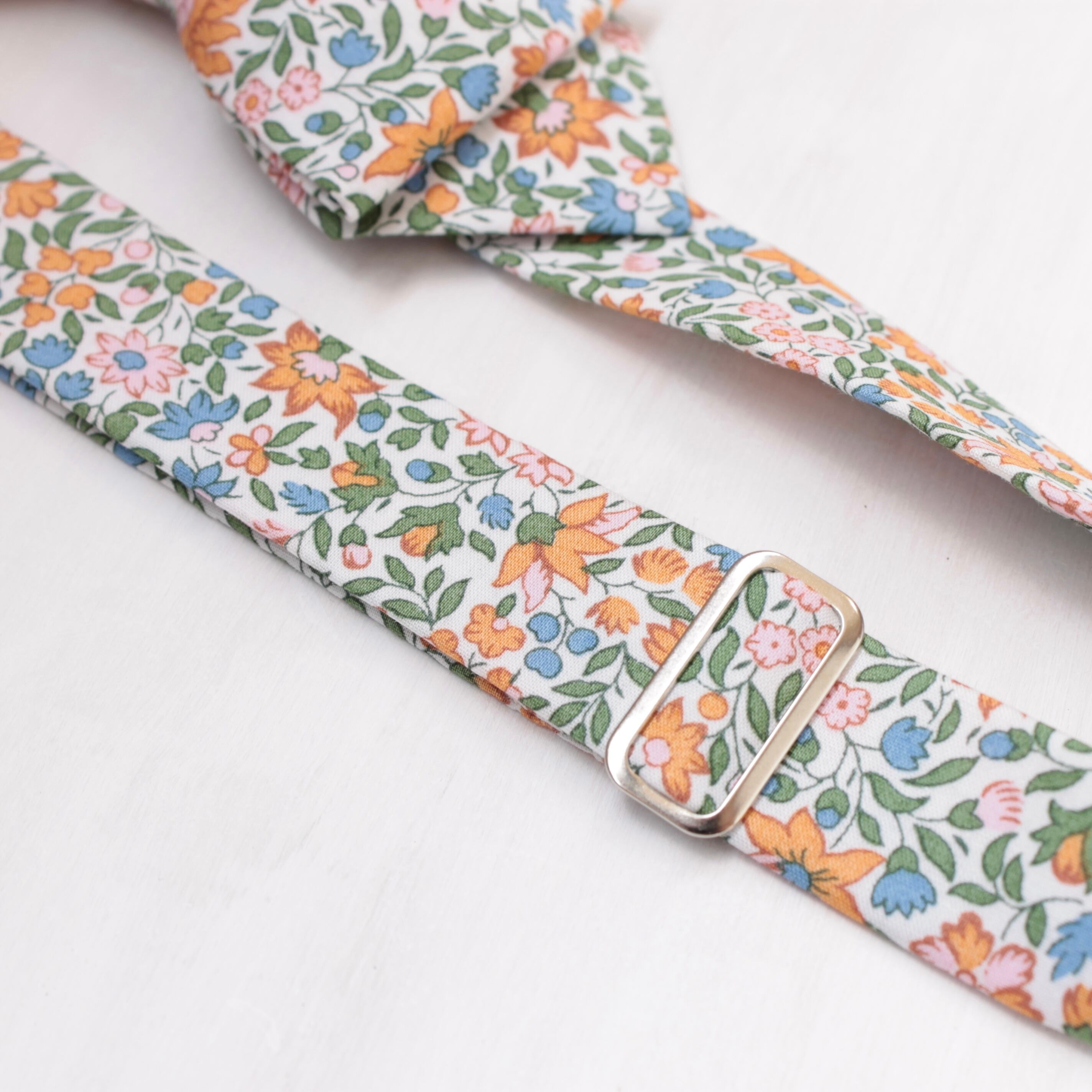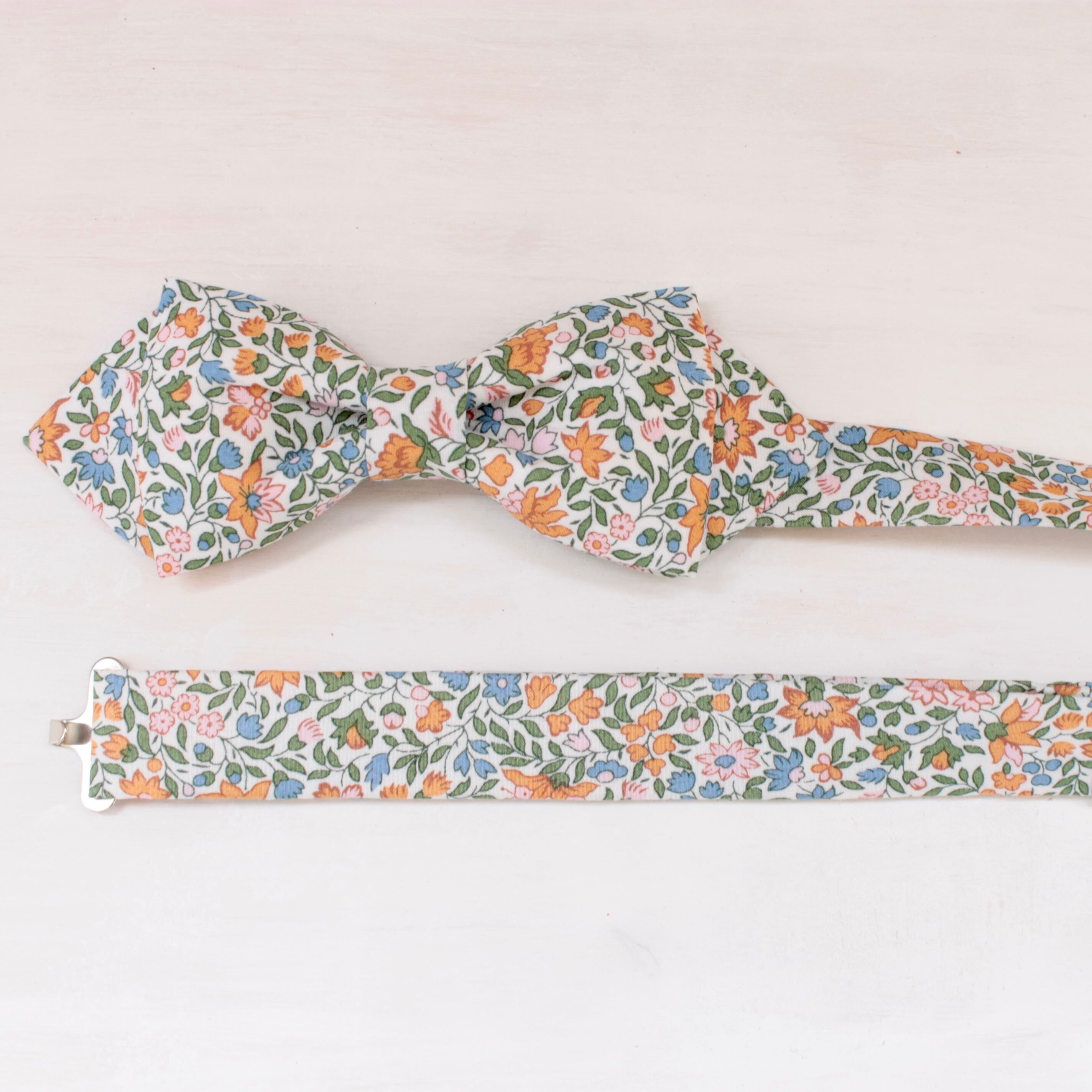 まるで陽だまりの中に咲く花々のように、身につけるだけで気持ちを明るくしてくれる蝶ネクタイです。