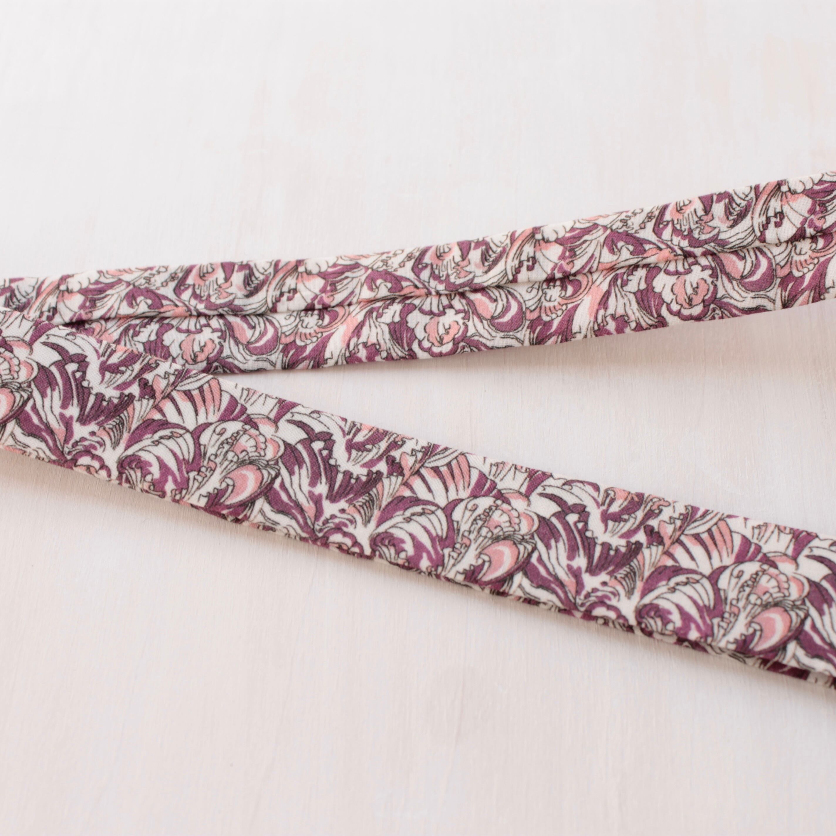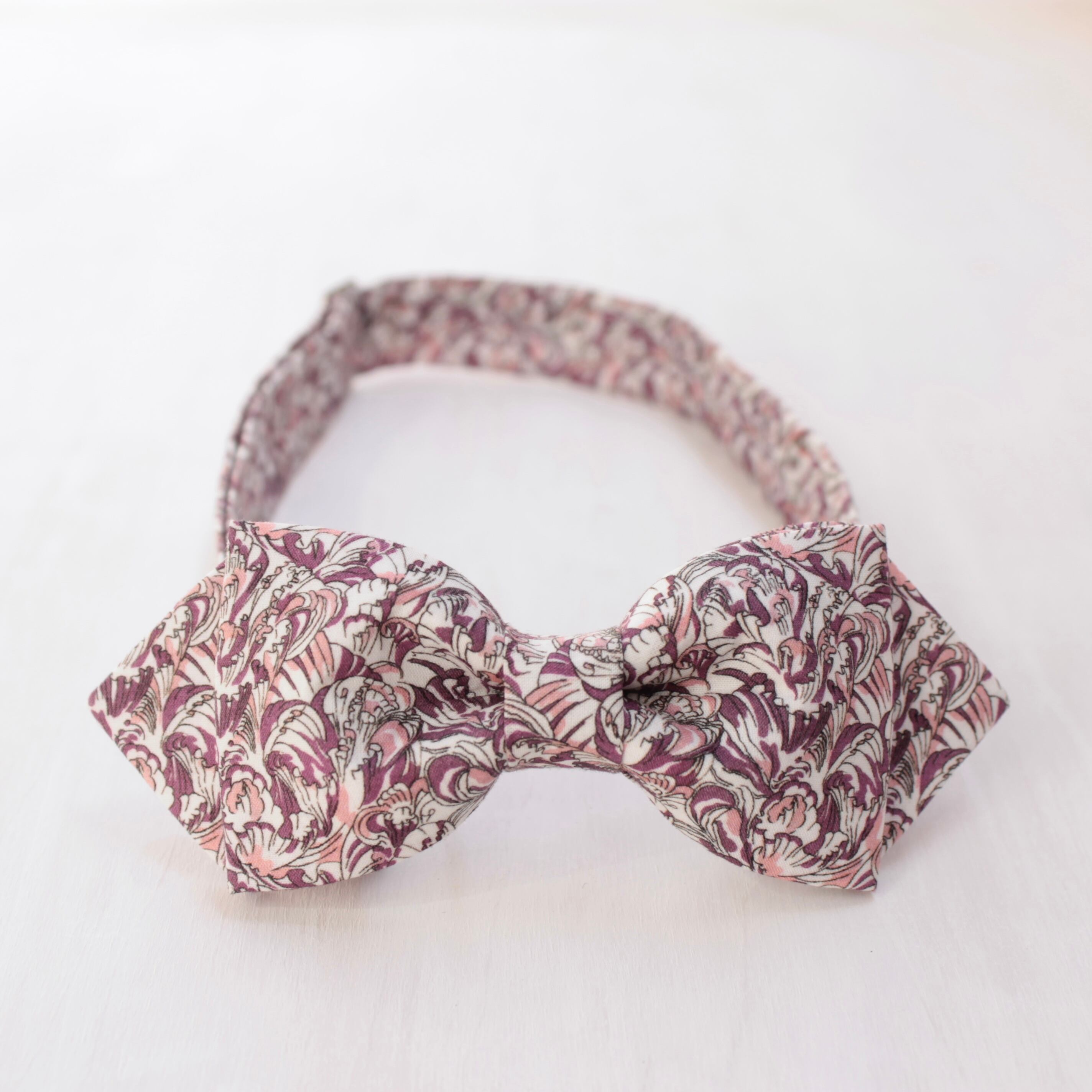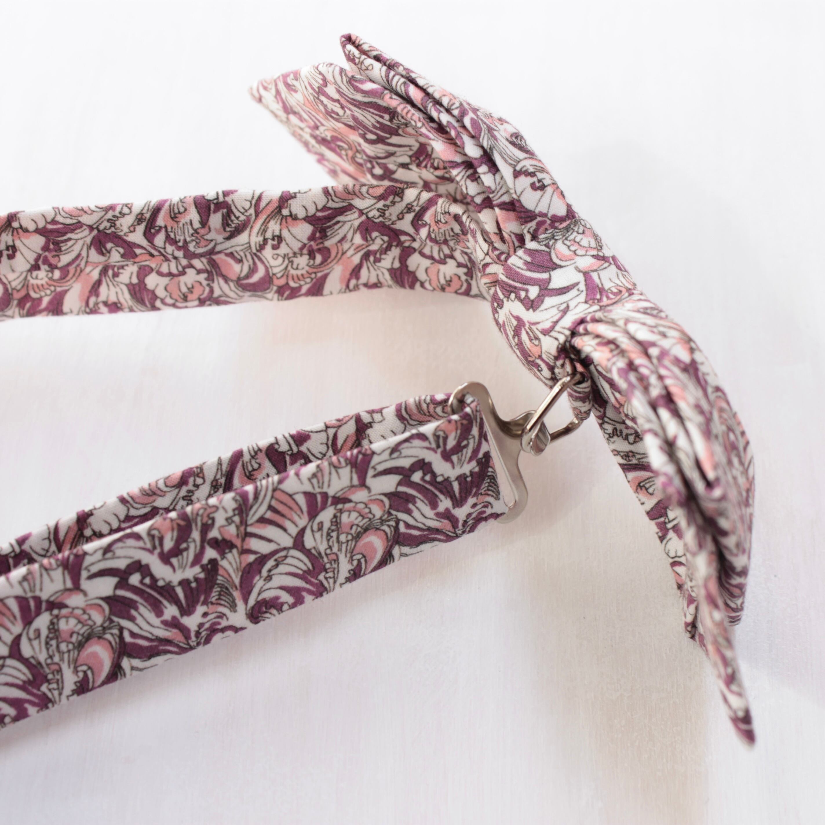 英国テキスタイルブランド、Liberty社の生地を使用しています。上質な光沢感と上品で華やかなデザインが特徴で、ハレの日はもちろん、カジュアルな装いへのワンポイントとしてもおすすめです。