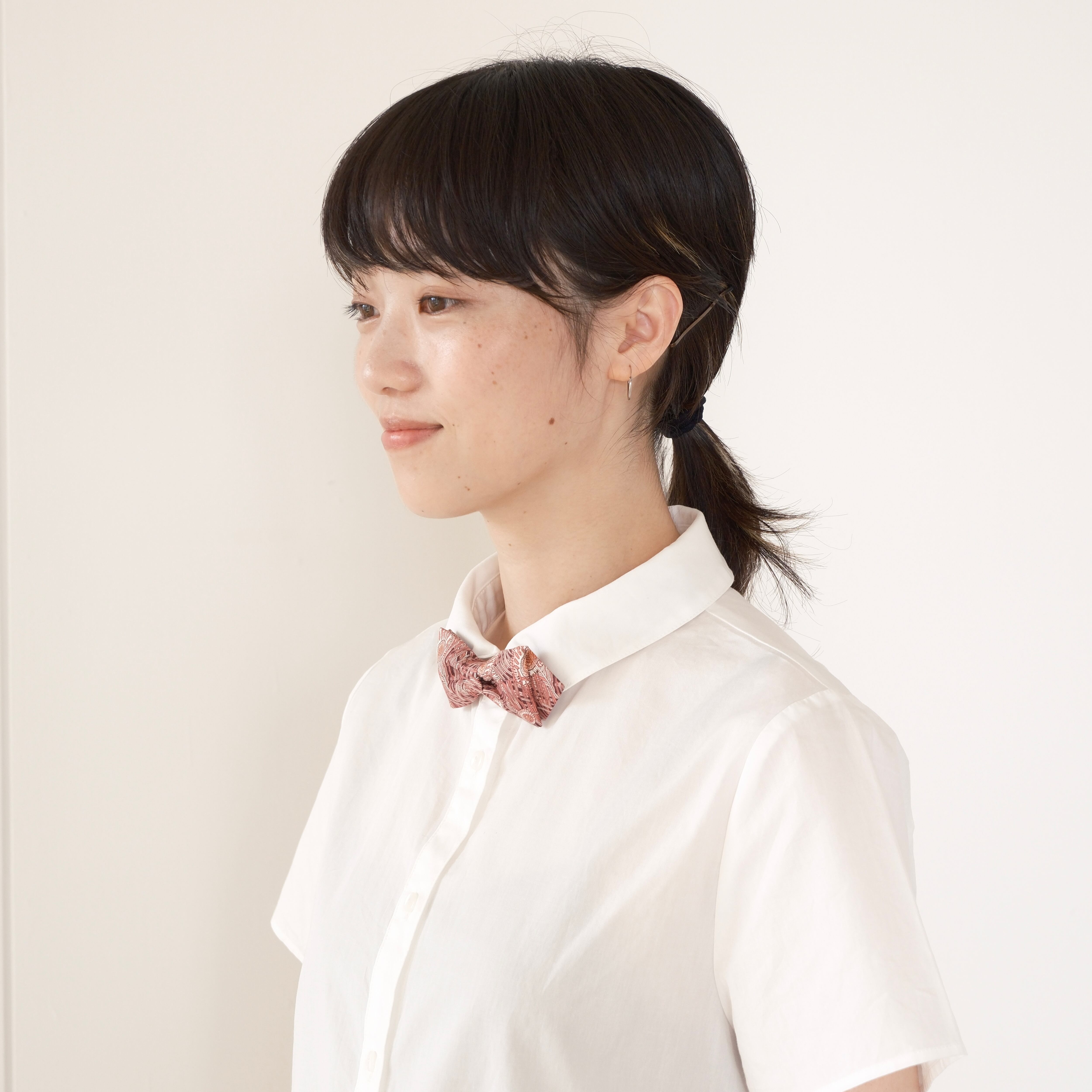 英国テキスタイルブランド、Liberty社の生地を使用しています。上質な光沢感と上品で華やかなデザインが特徴で、ハレの日はもちろん、カジュアルな装いへのワンポイントとしてもおすすめです。